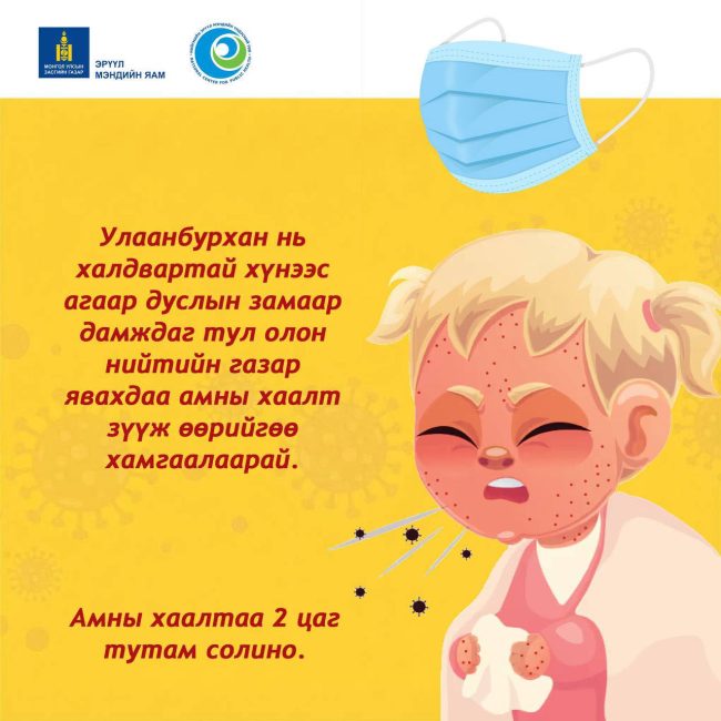HomeЗӨВЛӨГӨӨ, ЗӨВЛӨМЖУлаанбурхан өвчнөөс сэргийлье2026-01-12 Улаанбурхан өвчнөөс сэргийлэх дараах зөвлөмжүүдийг хэрэгжүүлээрэй. Мөн хүүхдийг товлолын дагуу вакцинд хамруулах, товлолоос хоцорсон бол нөхөн дархлаажуулалтад хамрагдахыг уриалж байна.