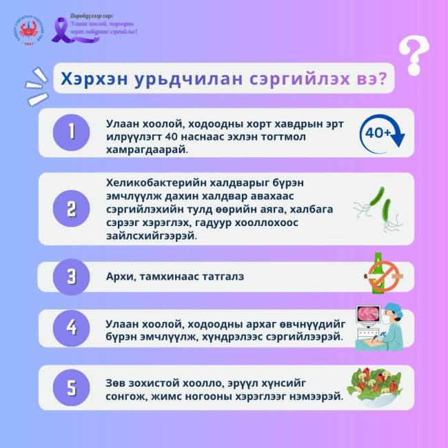 HomeМэдээУлаан хоолой, ходоодны хорт хавдраас сэргийлэх мэдээлэл түгээх сар2026-04-03 Улаан хоолой, ходоодны хорт хавдраас хэрхэн урьдчилан сэргийлэх талаар мэдээлэл хүргэж байна.
