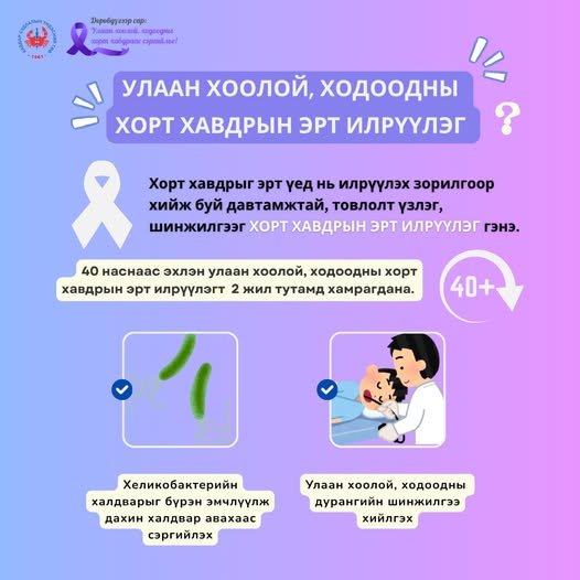 HomeМэдээУлаан хоолой, ходоодны хорт хавдраас сэргийлэх мэдээлэл түгээх сар2026-04-15 Улаан хоолой, ходоодны хорт хавдраас хэрхэн урьдчилан сэргийлэх талаар мэдээлэл хүргэж байна.