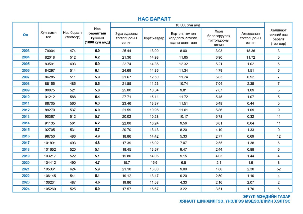 | 2 | Хүн амын нас баралт | 2003-2024 |