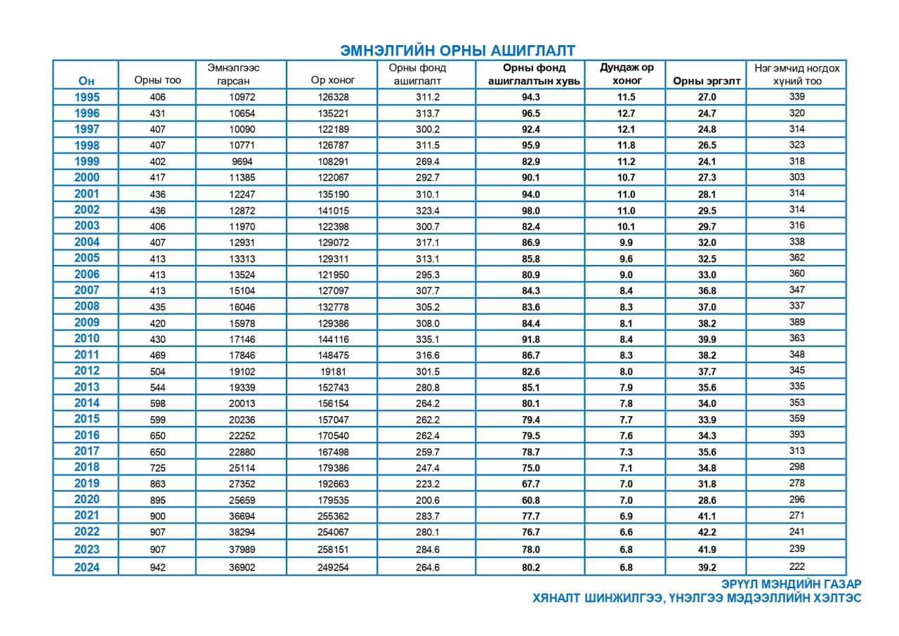 | 14 | Эмнэлгийн орны ашиглалт | 1995-2024 |
