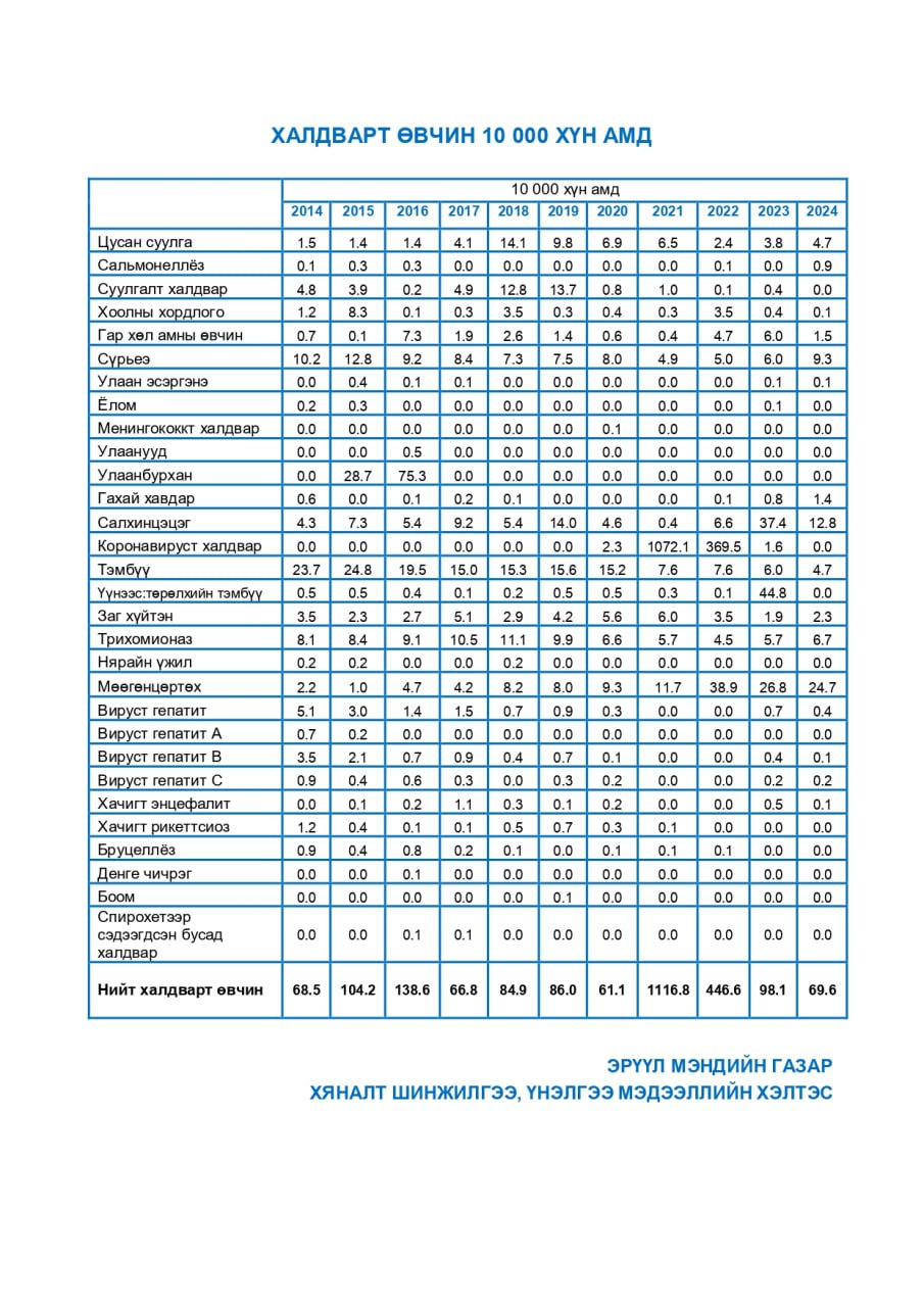 | 15 | Халдварт өвчин 10 000 хүн амд | |