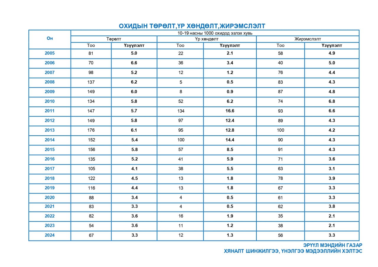 | 12 | Охидын төрөлт,үр хөндөлт, жирэмслэлт | 2005-2024 |
