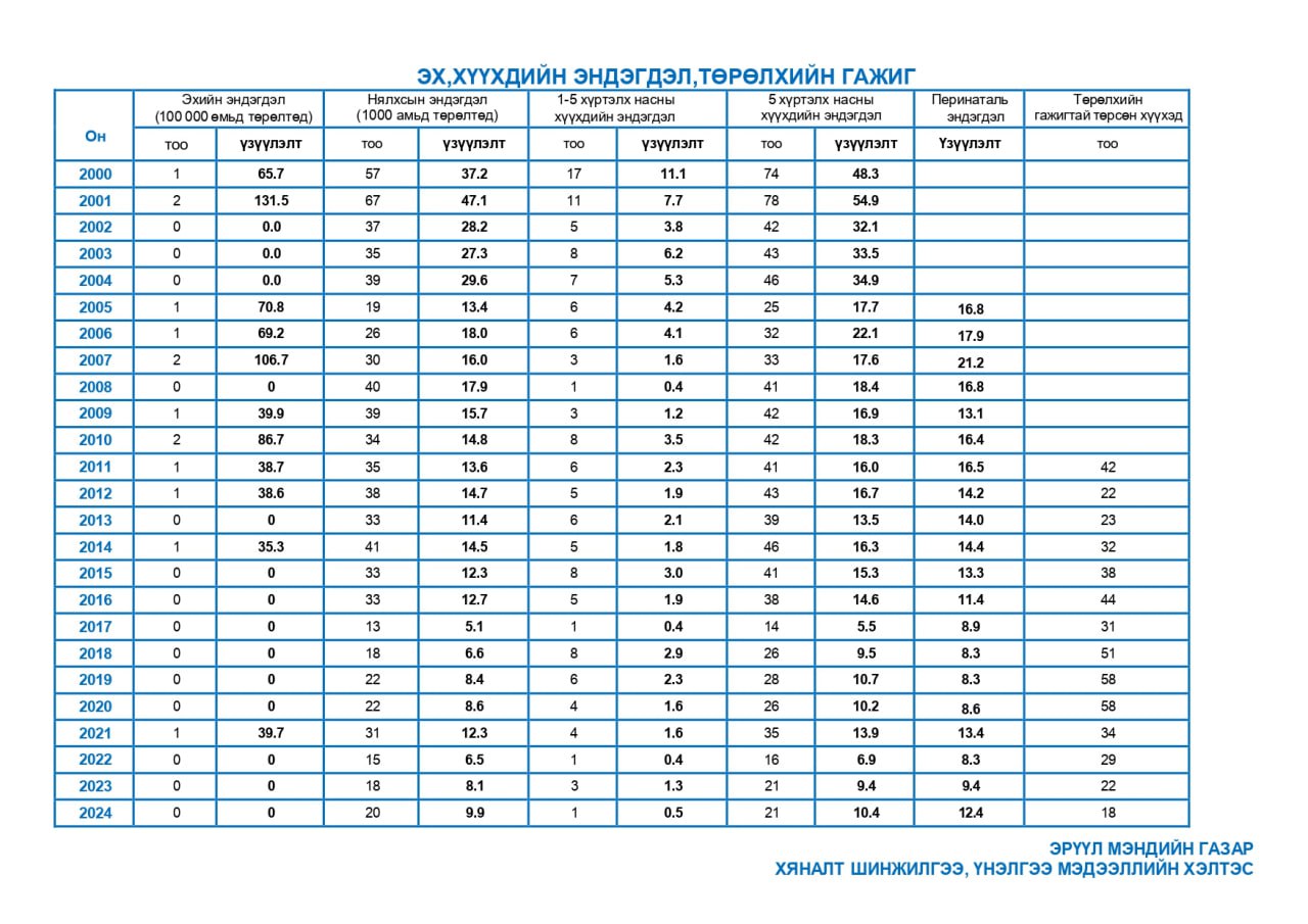 | 16 | Эх,хүүхдийн үзүүлэлт | 2000-2024 |